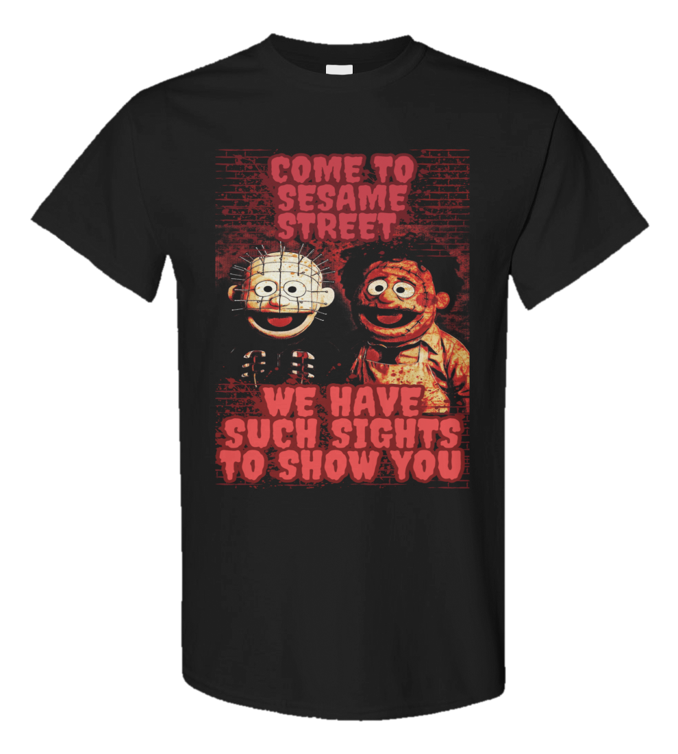 #parody #funny #silly #laughter #spooky #creepy #scary #puppets #sesamestreet #pinhead #leatherface #hellraiser #texaschainsawmassacre #horrorgenre #horrormovies #cinema #film #tvshow #hedoublehockeysticks #horrorfans #horrorfanatic #nukeone78creepycouture #independenthorrorapparel #noveltytees #tshirtdesign #tshirtstyle #tshirtdesign