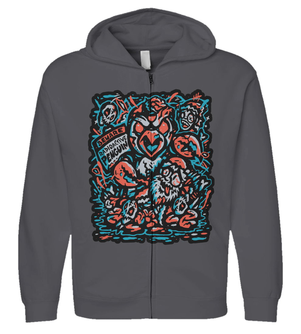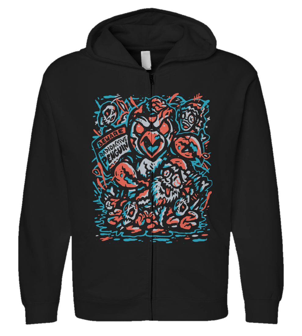 Radioactive penguin with spider's leg & crab's arms and eating Santa Claus & elves