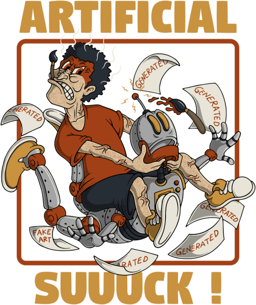 A retro cartoon robot losing its cool! Perfect for anyone who loves dark humor, AI jokes, and vintage-style art. Artificial Suuuck! captures the chaos of technology gone wrong funny, sarcastic, and totally relatable.