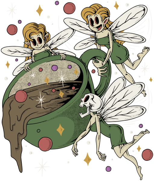 retro-style fairies enjoying their cozy coffee momentsperfect for dreamers, caffeine lovers, and vintage aesthetic fans. Ideal for mugs, tees, or wall art with a soft nostalgic charm.