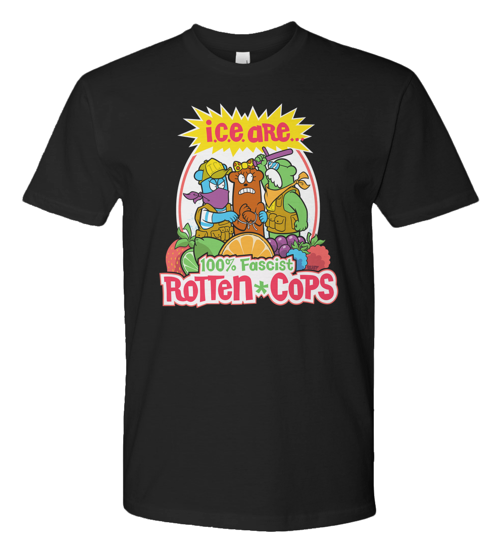 NONE of these flavors of ROTTEN COPS are any good! They all taste like you've just licked a nasty leather boot, and whether it's hot or cold outside, that's not a taste you want in your mouth... unless you're a bootlicker, that is. These cops will harass you just because of the color of your skin, or your accent, demanding to know where you're from and goosestepping into your neighborhood or city with no warrants and big chips on their shoulders. Let this fascist government know what you think of their gestapo troops with this t-shirt.