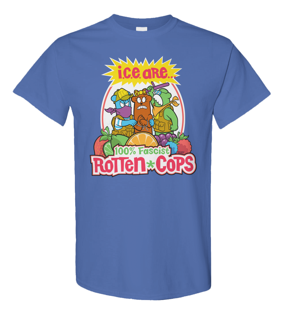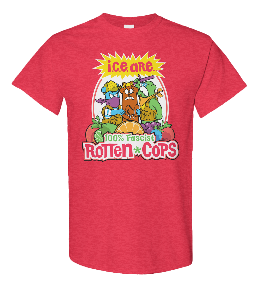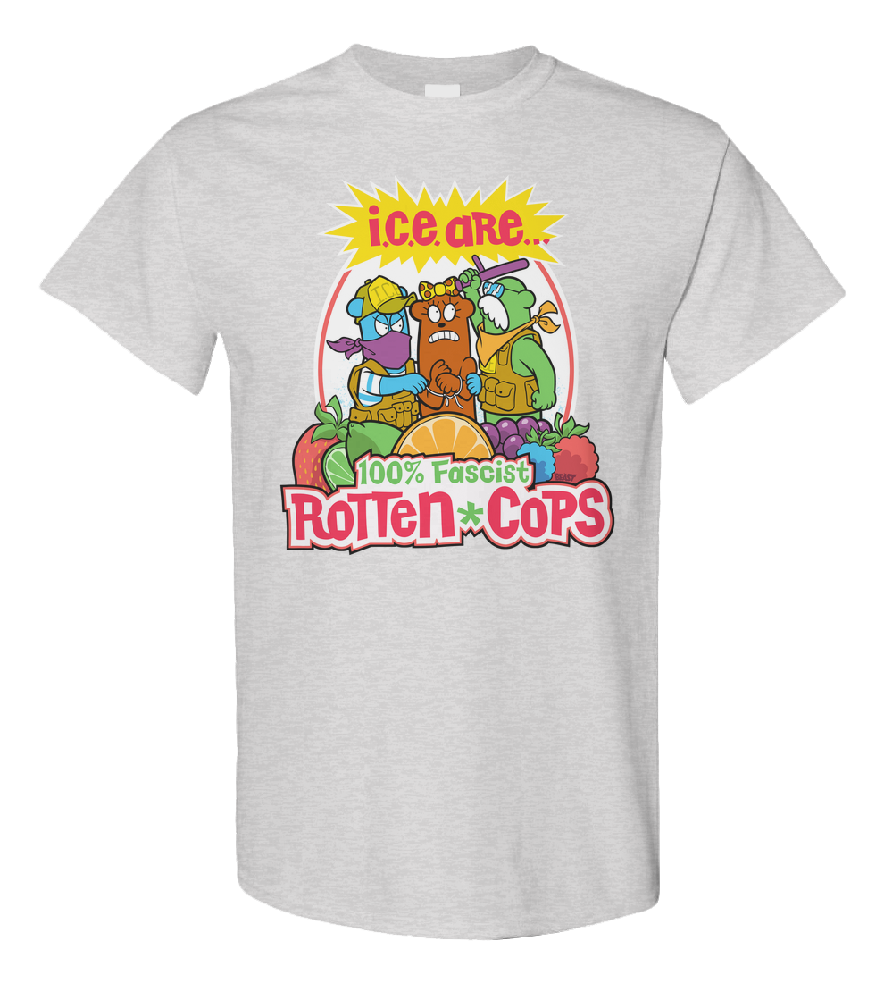 NONE of these flavors of ROTTEN COPS are any good! They all taste like you've just licked a nasty leather boot, and whether it's hot or cold outside, that's not a taste you want in your mouth... unless you're a bootlicker, that is. These cops will harass you just because of the color of your skin, or your accent, demanding to know where you're from and goosestepping into your neighborhood or city with no warrants and big chips on their shoulders. Let this fascist government know what you think of their gestapo troops with this t-shirt.