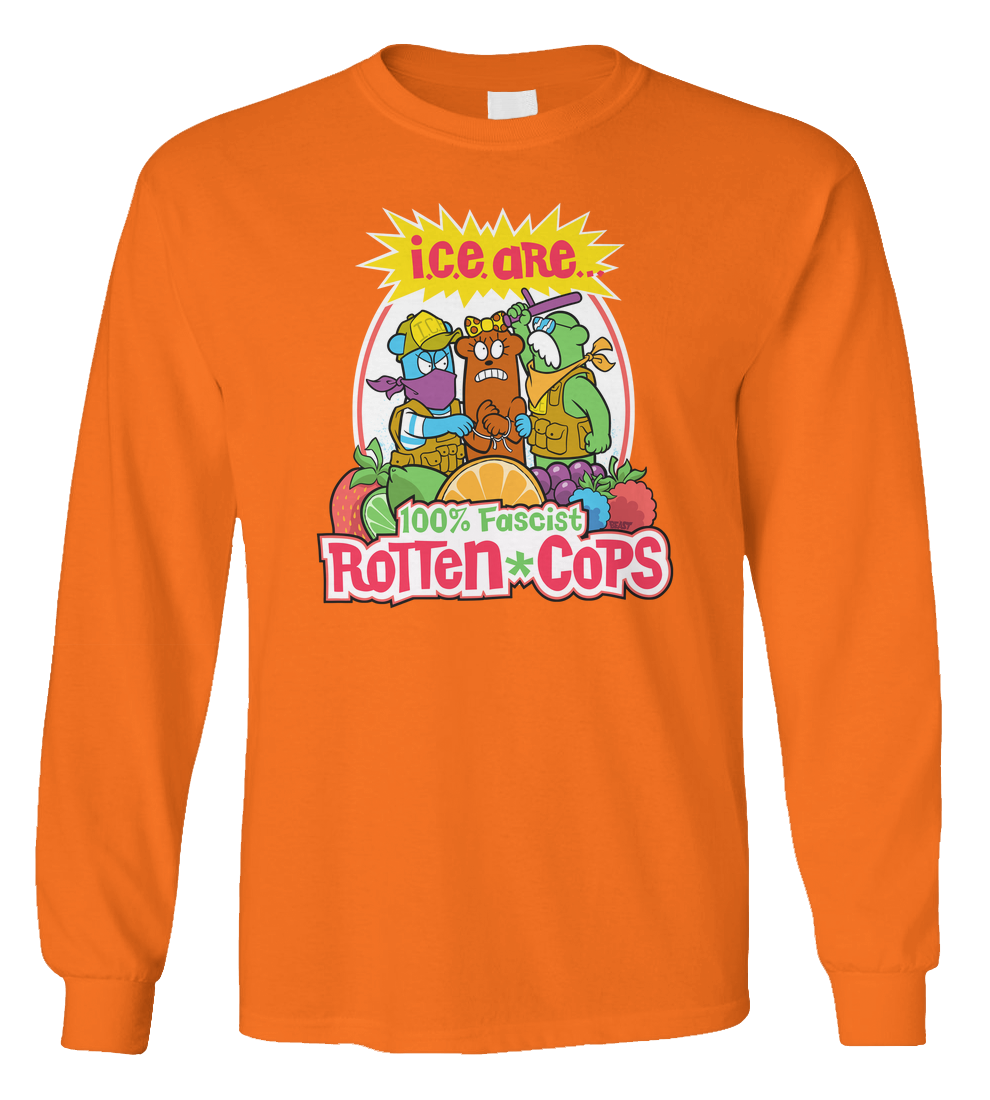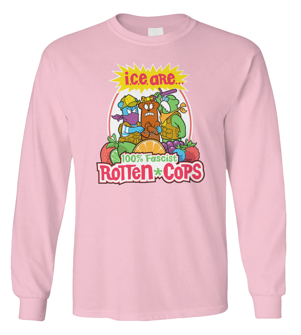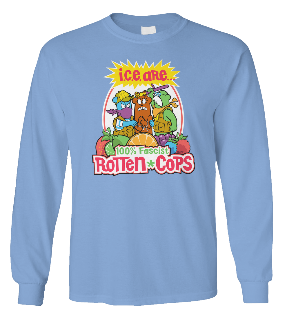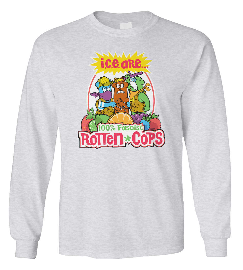 NONE of these flavors of ROTTEN COPS are any good! They all taste like you've just licked a nasty leather boot, and whether it's hot or cold outside, that's not a taste you want in your mouth... unless you're a bootlicker, that is. These cops will harass you just because of the color of your skin, or your accent, demanding to know where you're from and goosestepping into your neighborhood or city with no warrants and big chips on their shoulders. Let this fascist government know what you think of their gestapo troops with this t-shirt.