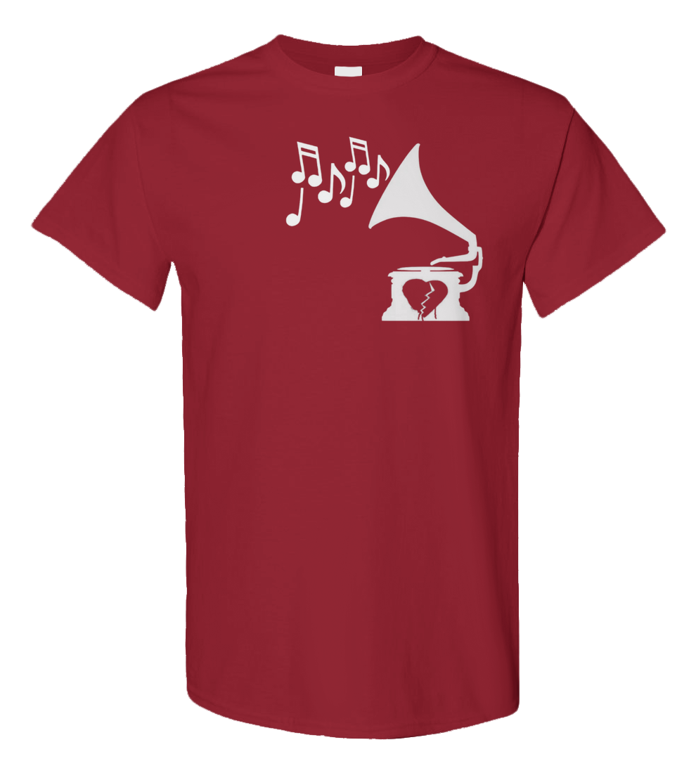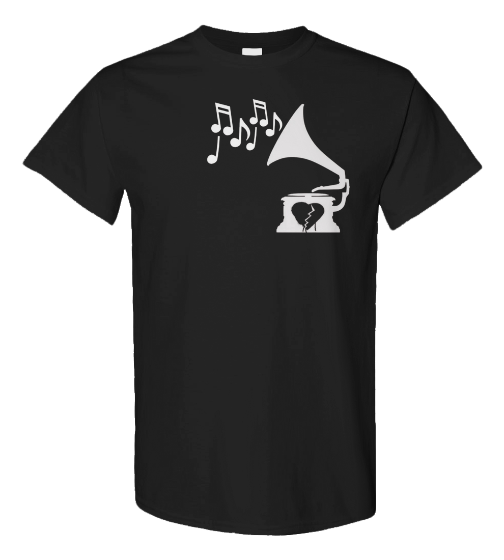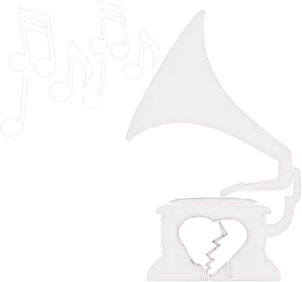 Phonograph with broken heart and music notes