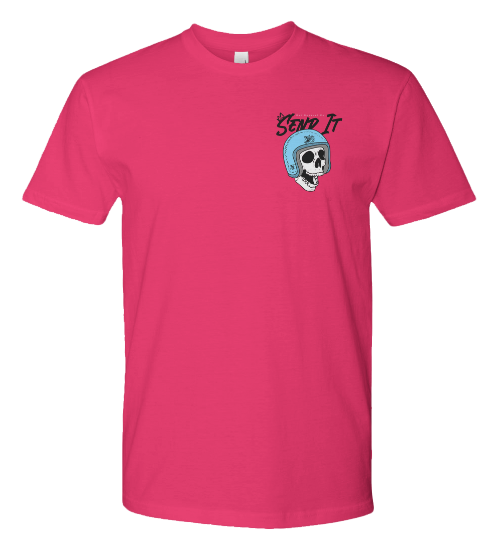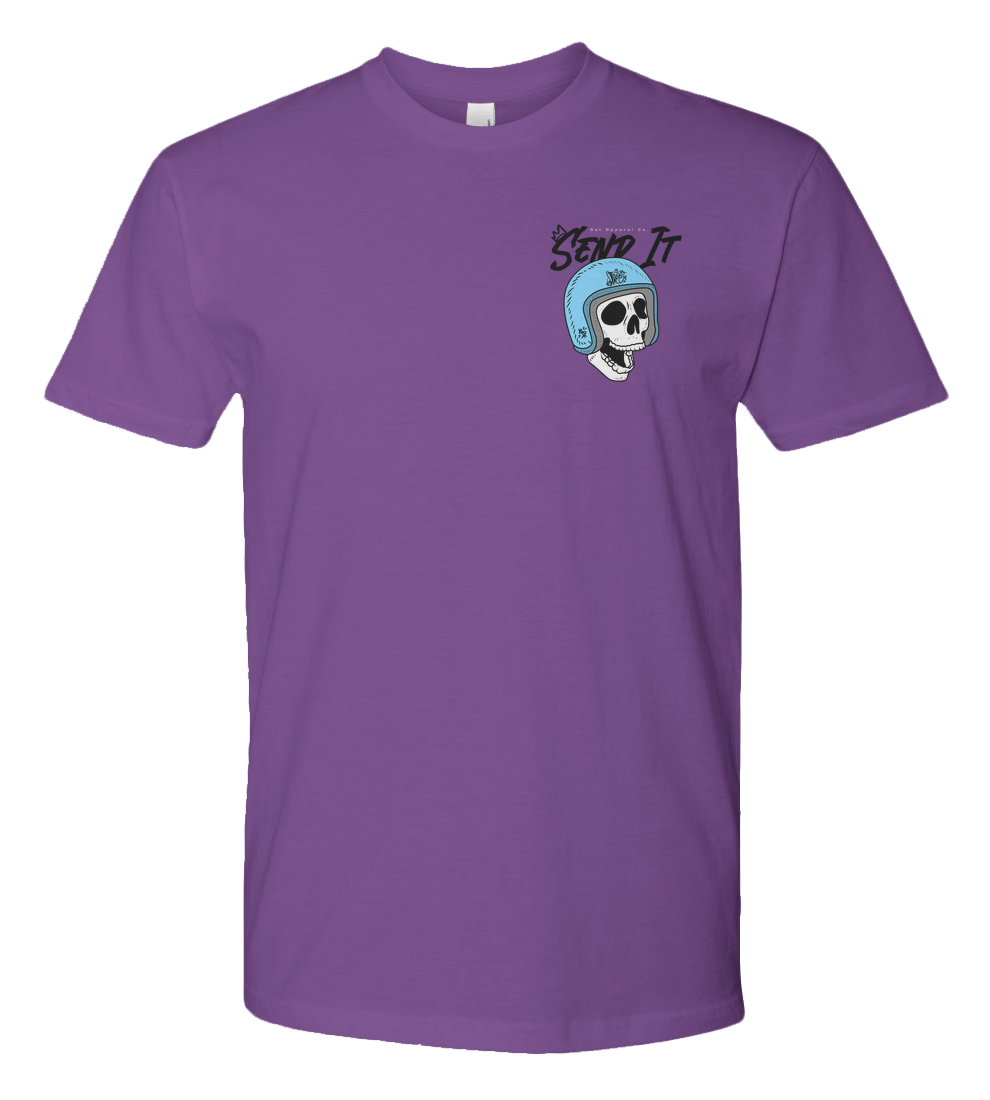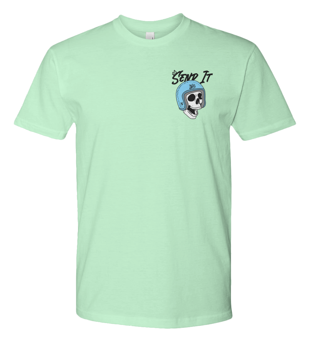 No hesitation. No fear. Just full send. The Send It tee from Rat Apparel Co. captures that go-big-or-go-home attitude every true rider lives by. Featuring a bold skull-in-helmet graphic with gritty hand-drawn style, this shirt is made for those who send every jump, rail, and line like its their last.