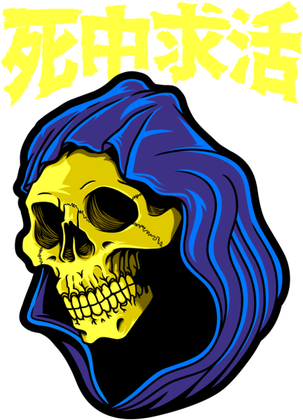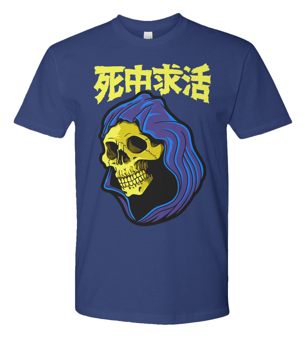 Kanji reads: Shichu-kyukatsu, which translates to seeking a way to survive a conceivably fatal situation.