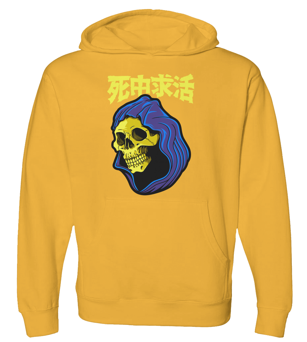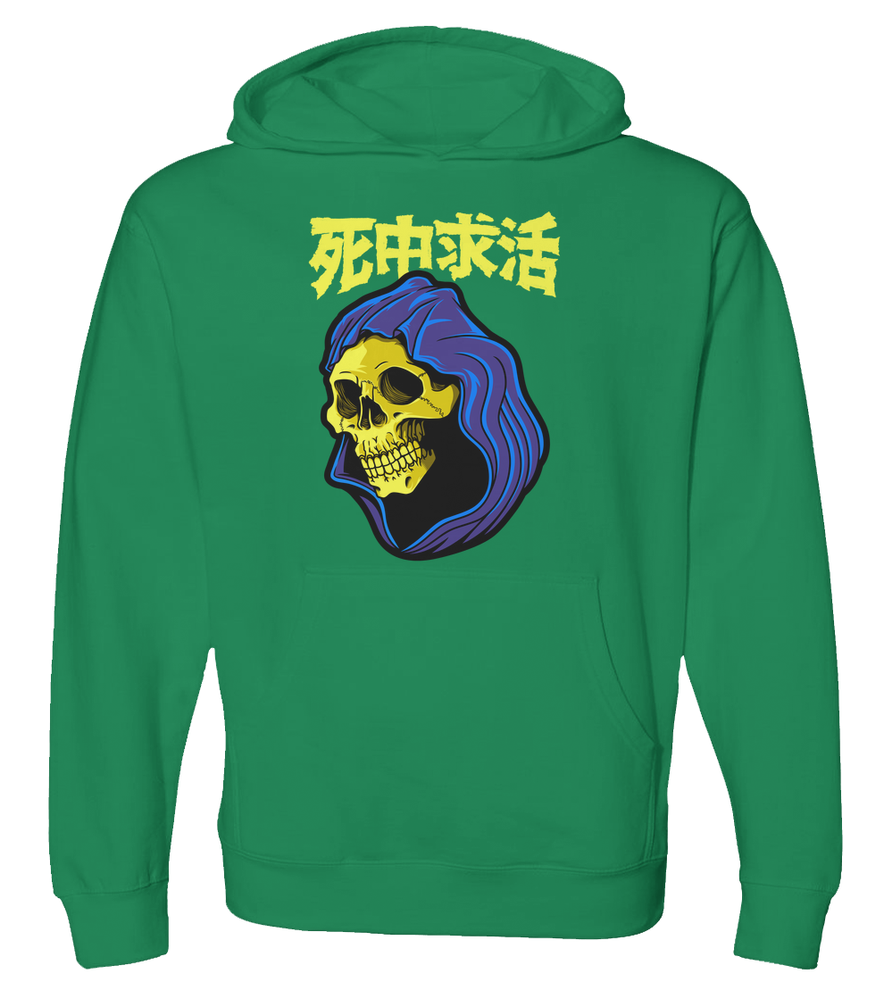 Kanji reads: Shichu-kyukatsu, which translates to seeking a way to survive a conceivably fatal situation.