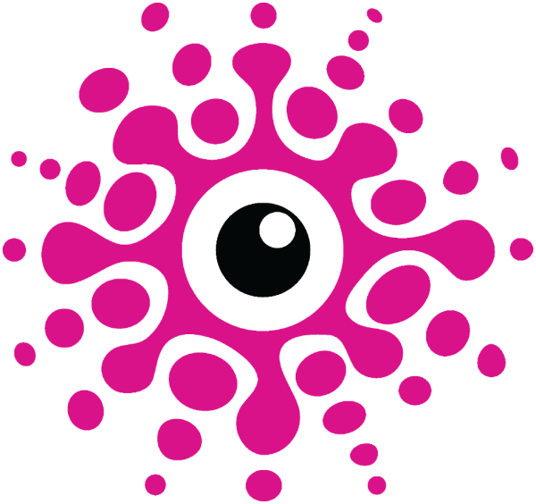 On the front left chest floats The Terrible Squiddly Eye of Doom, while the back sports a long and lean portrait of Skull #026 with matching magenta blood.