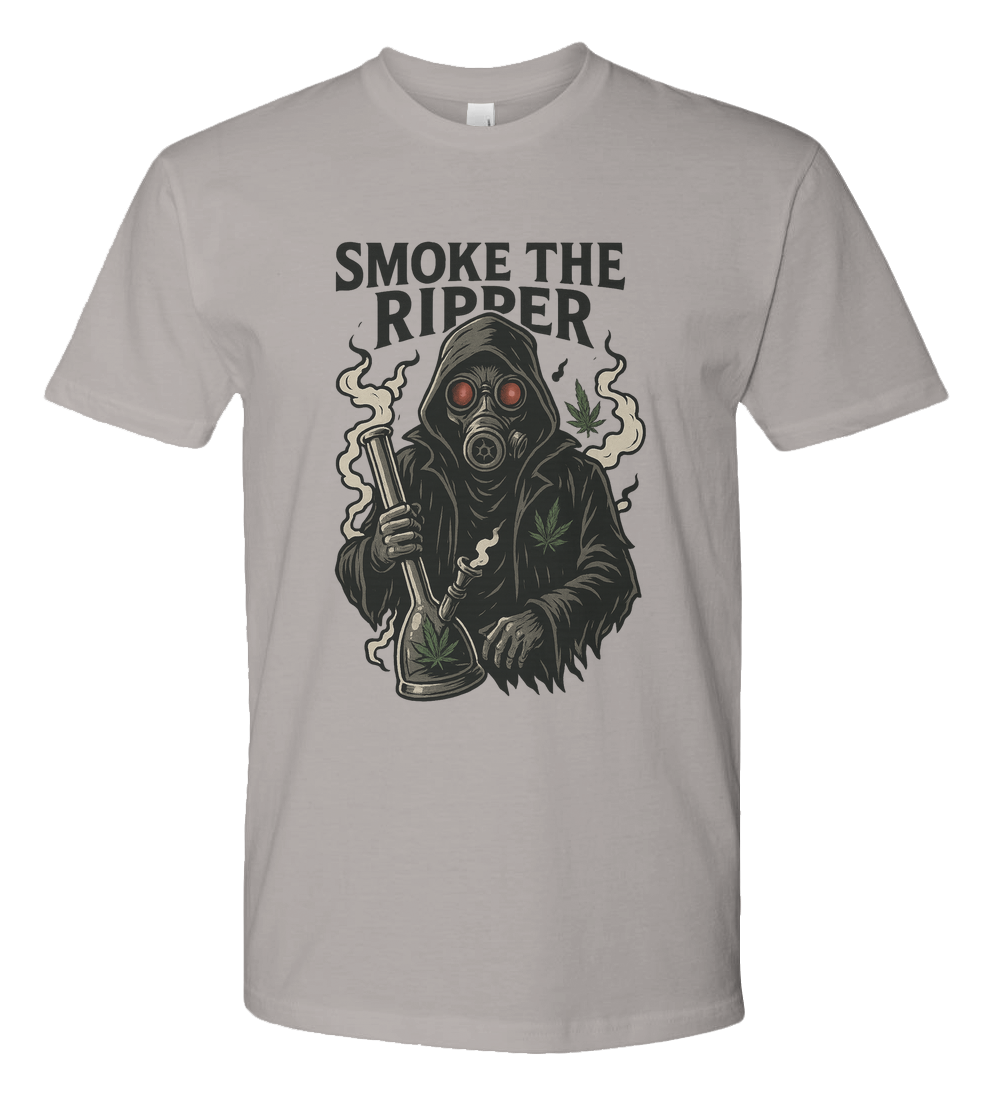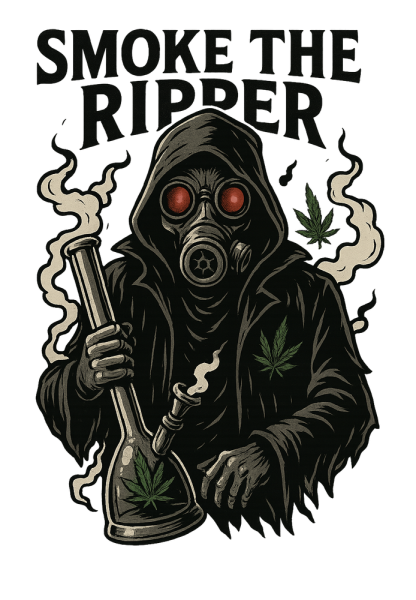 Light the legend. The Smoke the Ripper Tee Whiteout Edition brings the urban myth to life with bold contrast and clean impact. Printed on crisp white cotton, this tee showcases the gas-masked cannabis icon wielding his infamous bongThe Reapers Tubesurrounded by haze and herb.