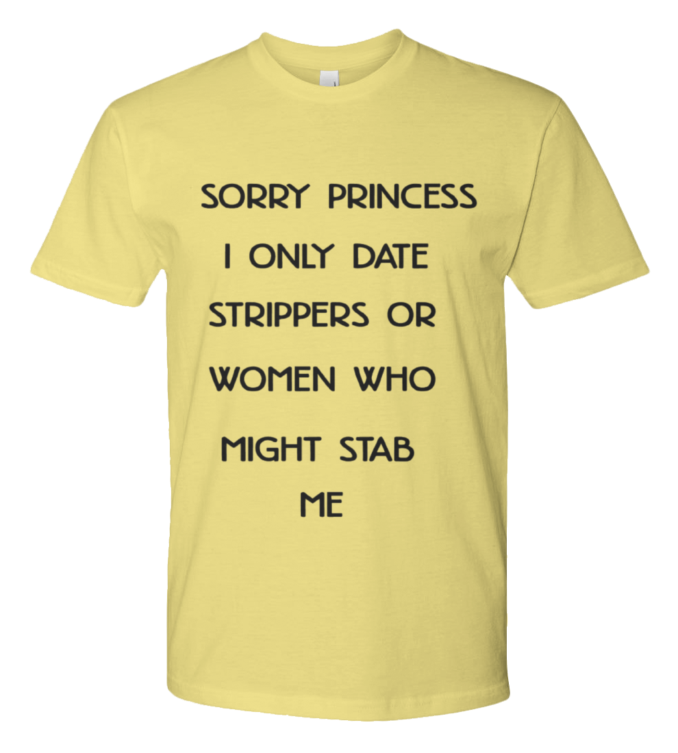 sorry princess i only date strippers or women who might stab me shirt