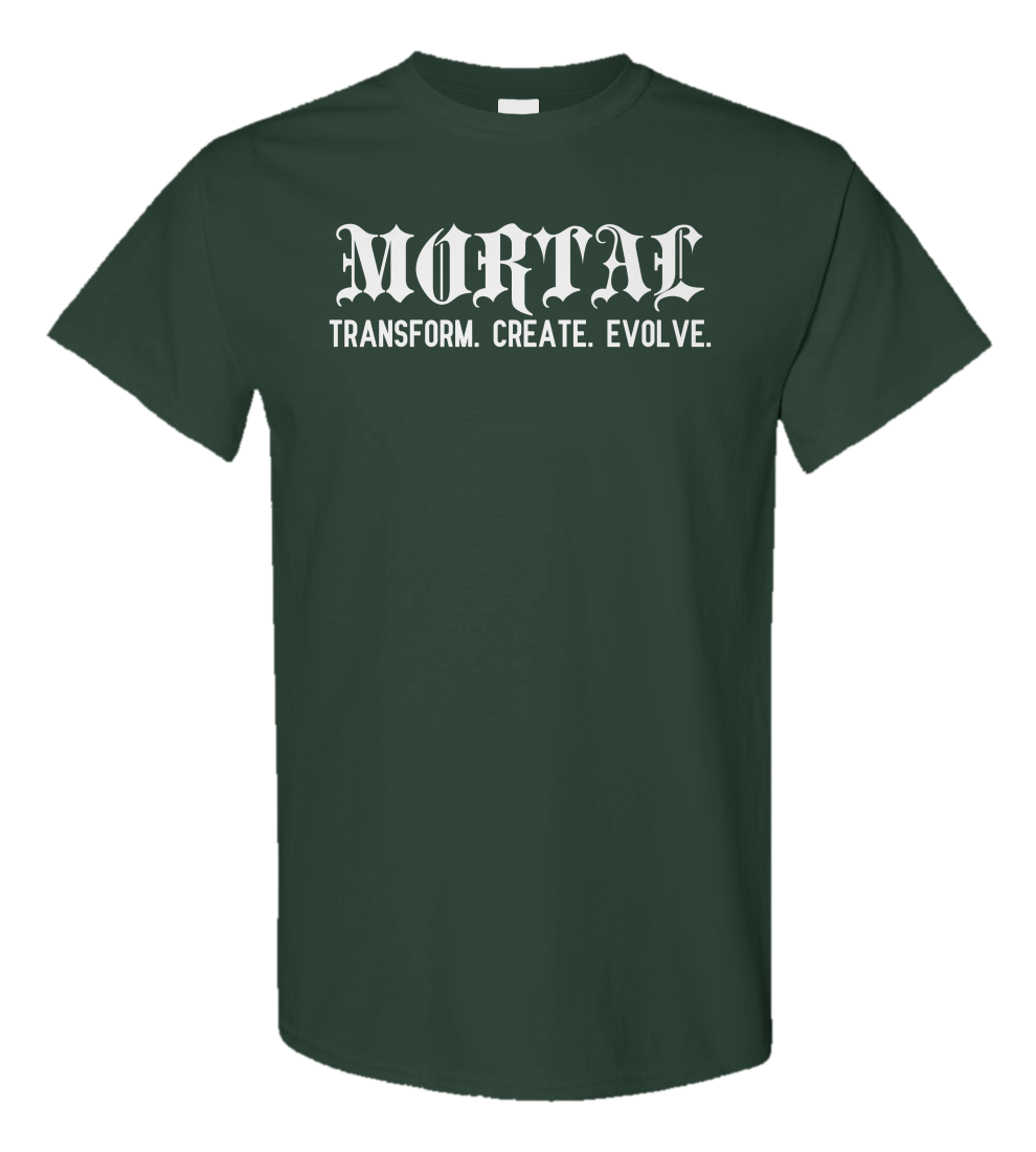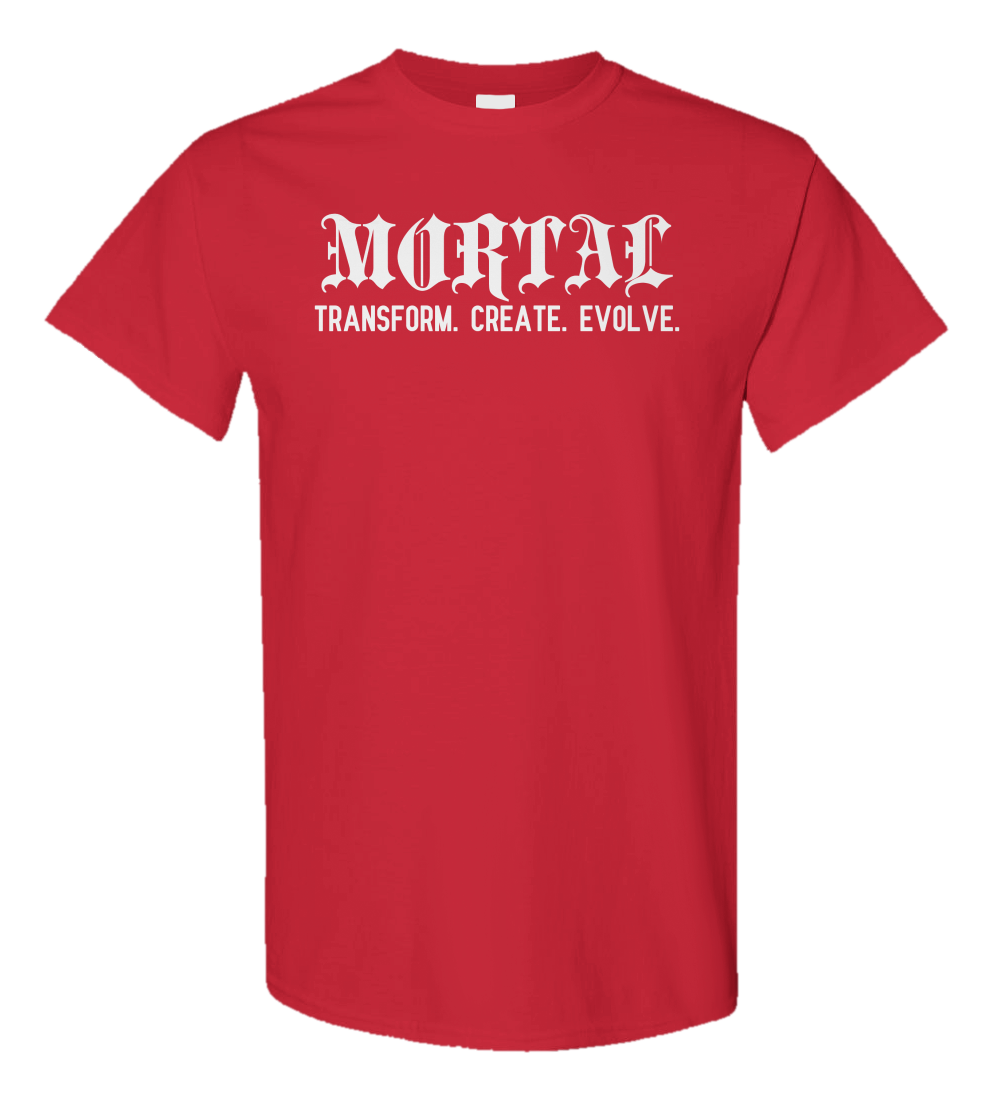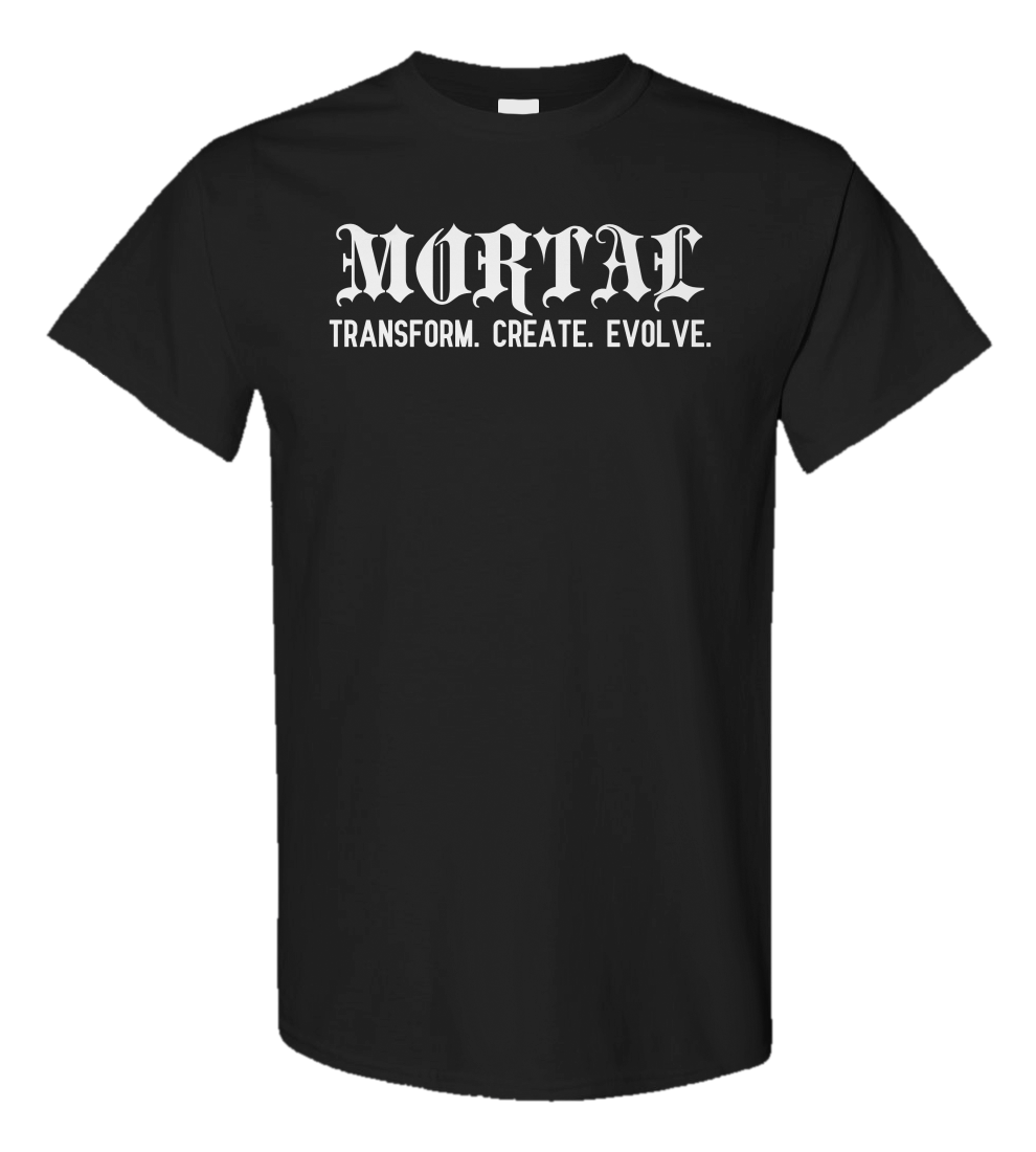 Part of our Tagline Series, this tee features "MORTAL" across the chest with the words "Transform. Create. Evolve." just below. A clean, minimalist design that speaks to growth and change. Made for those who move with purpose.