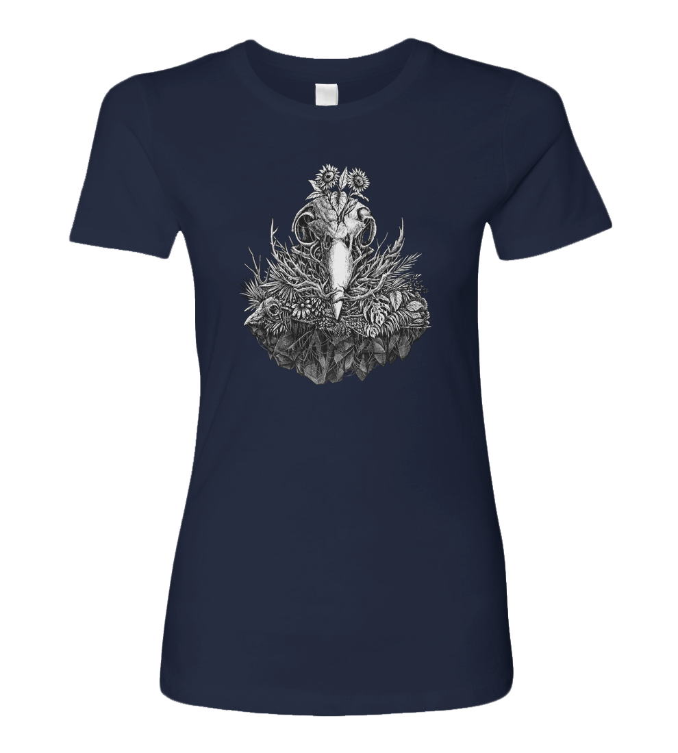 Bird skull nest full of twigs and sunflowers growing on the skull