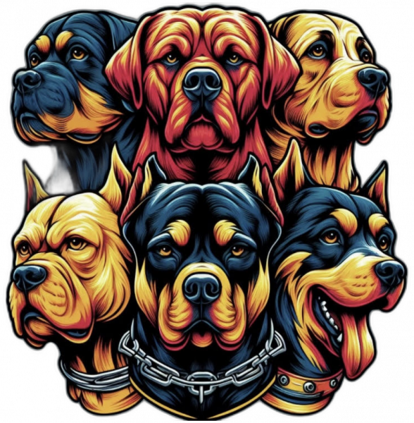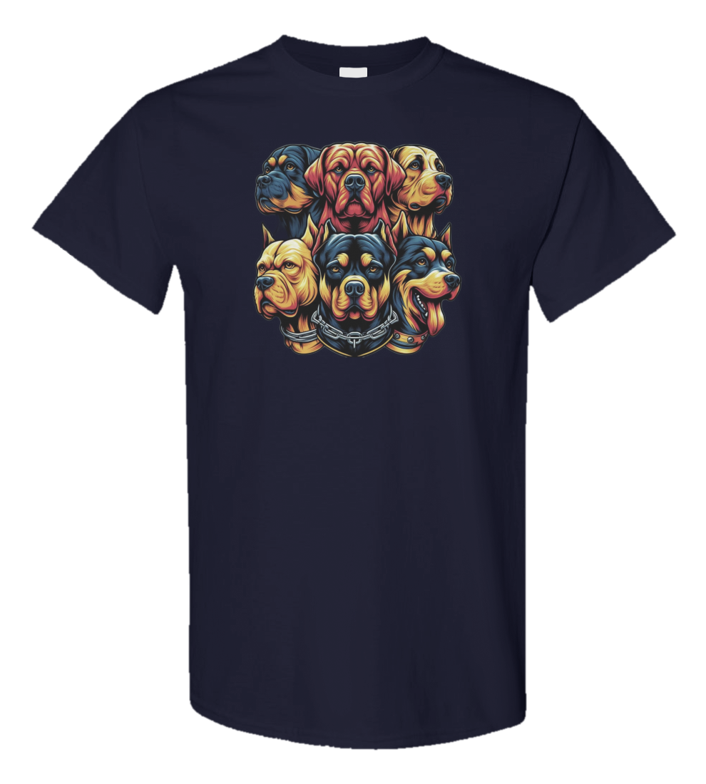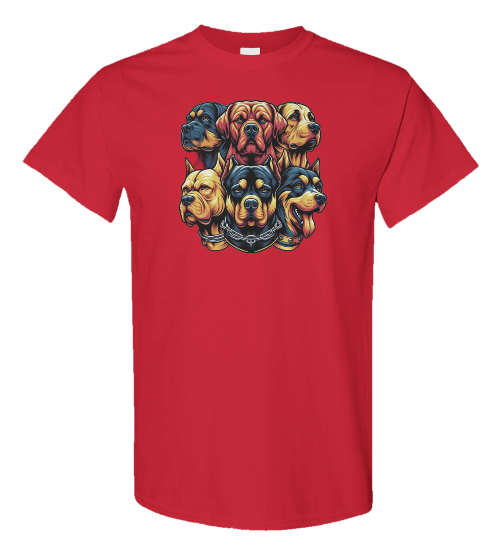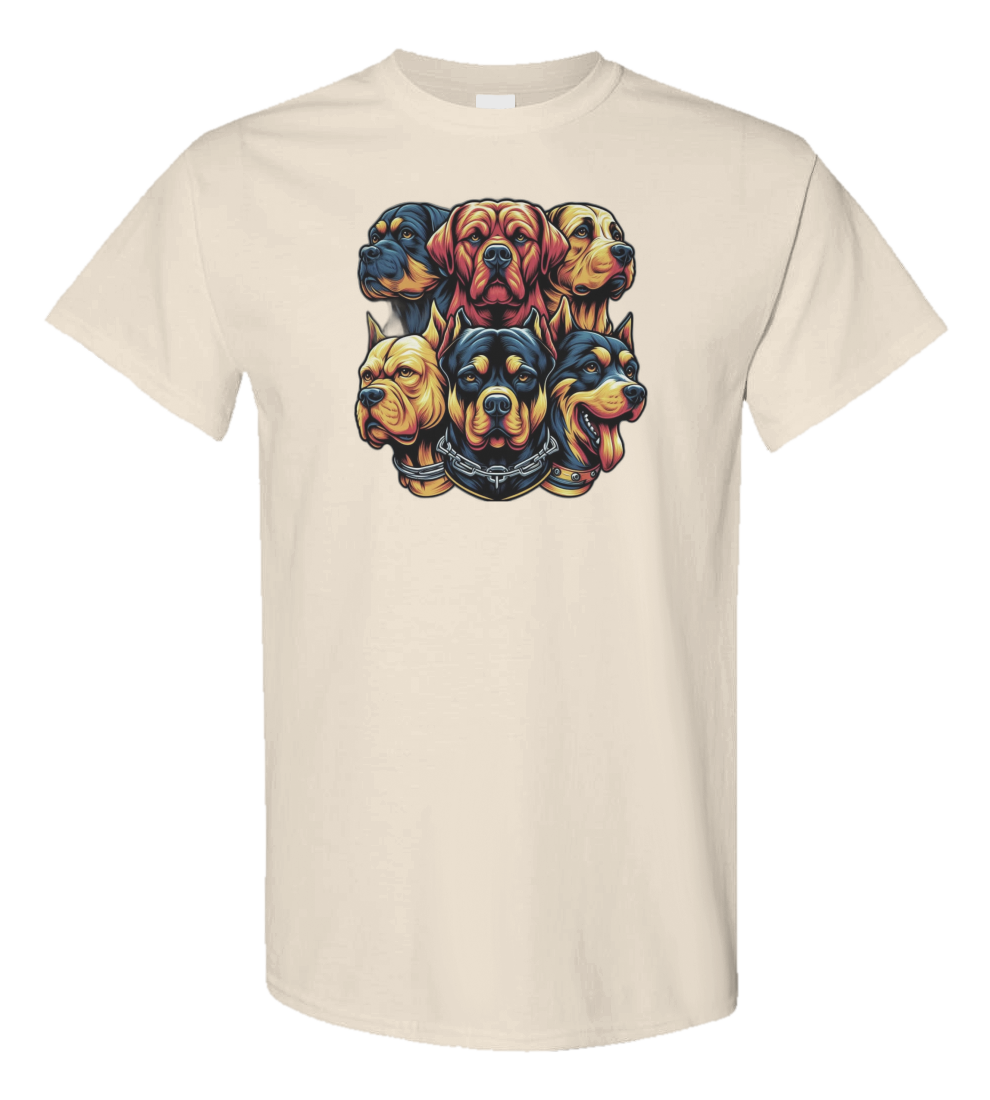 This lively and attention-grabbing t-shirt features six colorful dogs adorned with various designs, creating a playful and distinctive look. The whimsical face of the colorful dog gang design adds a touch of fun and charm to any outfit. With its bold colors and intricate patterns, this t-shirt is sure to turn heads and make a statement wherever you go.