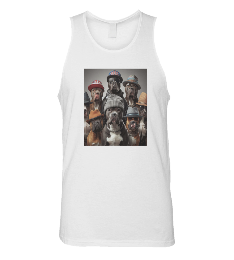 Show off your love for dogs and unique fashion with this exclusive tank top! It's not just a piece of clothing; it's a statement piece that will turn heads and start conversations wherever you go. Don't miss out on the opportunity to express your individuality and join the dog-pound gang today! This trendy tank top is perfect for men who want to inject some fun and flair into their wardrobe. Stand out from the crowd and make a bold fashion statement with this must-have tank top! Get yours now and unleash your inner style icon!