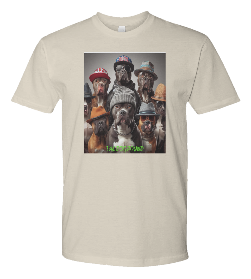 The Dog Pound Gang is not just about fashion, though. They exude a sense of camaraderie and unity, proudly displaying their gang name, "THE DOG POUND GANG!" on their t-shirts. This image captures the spirit of friendship and adventure as these dogs embark on their daily escapades together. Whether they're exploring the neighborhood or simply lounging in the sun, the Dog Pound Gang is always ready to make a statement with their impeccable style. Bring a touch of canine charm and fashion-forward flair into your life with this captivating image of the dog pound.