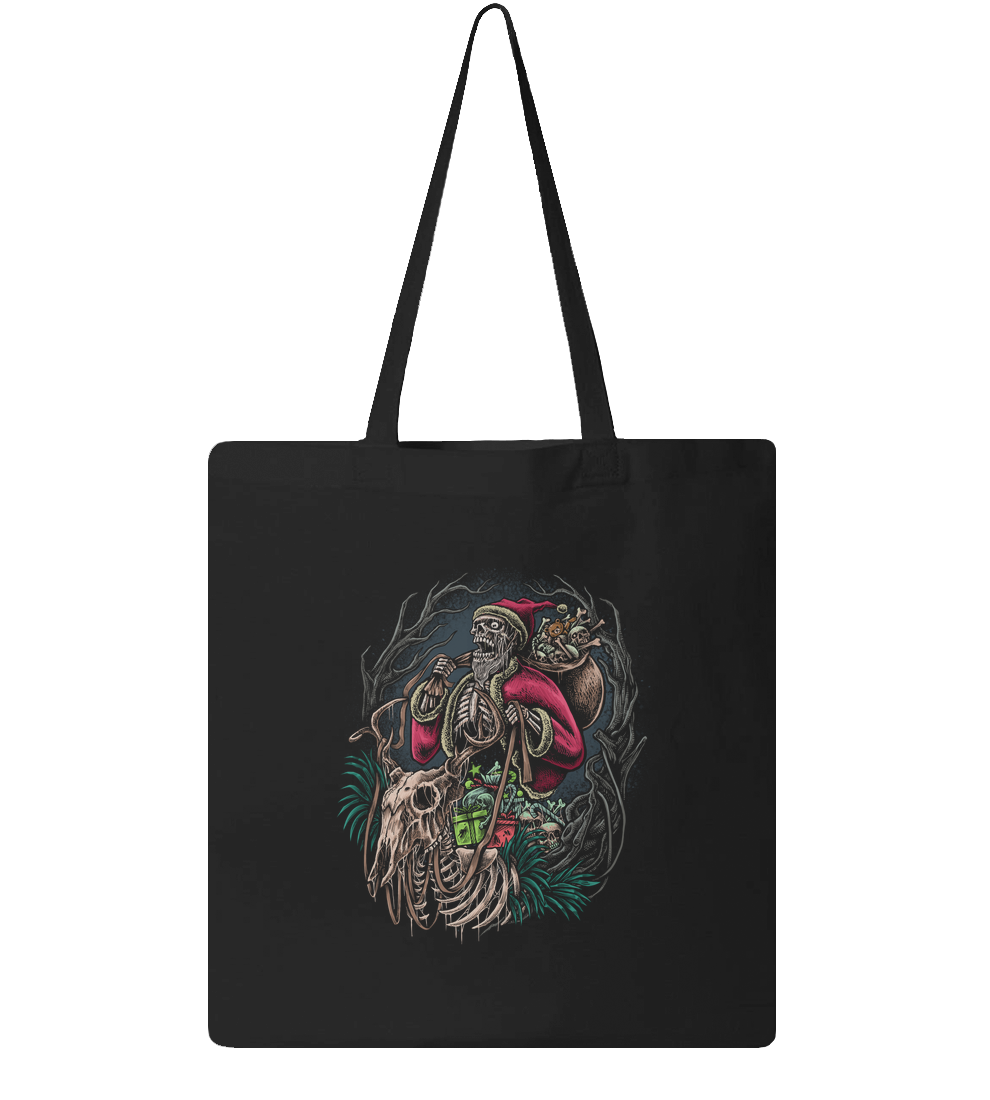 Santa Claus is coming to town... from the grave! This dark and detailed illustration features a zombie/skeletal St. Nick in tattered holiday robes, surrounded by dead trees and the bones of his former sleigh team. A perfect alternative design for punk, metal, or horror fans looking to subvert the traditional Christmas cheer.
