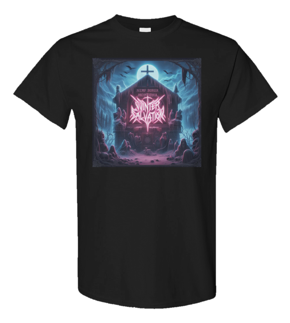Step into the cold, unforgiving world of VVINTER SALVATION with this exclusive T-shirt featuring the haunting album art from their hit single, The Lakes Grim Embrace. Crafted from premium, soft cotton, this shirt is as comfortable as it is striking, making it a must-have for any true metalhead.