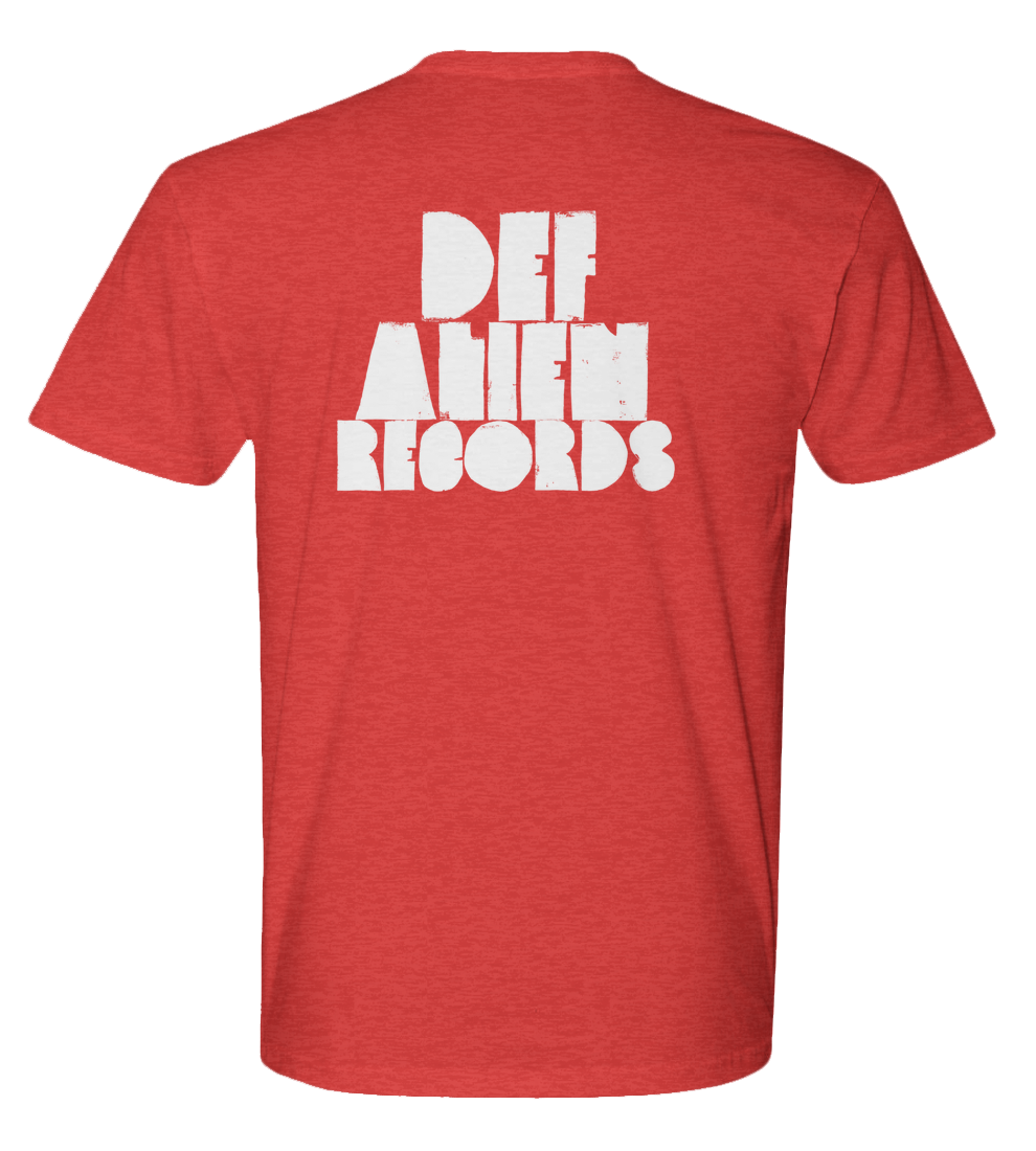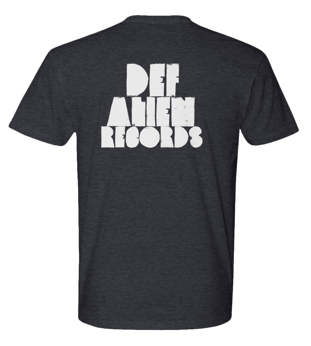 On the back: the throwback, graffitistyle DEF ALIEN RECORDS logo in sharp white.