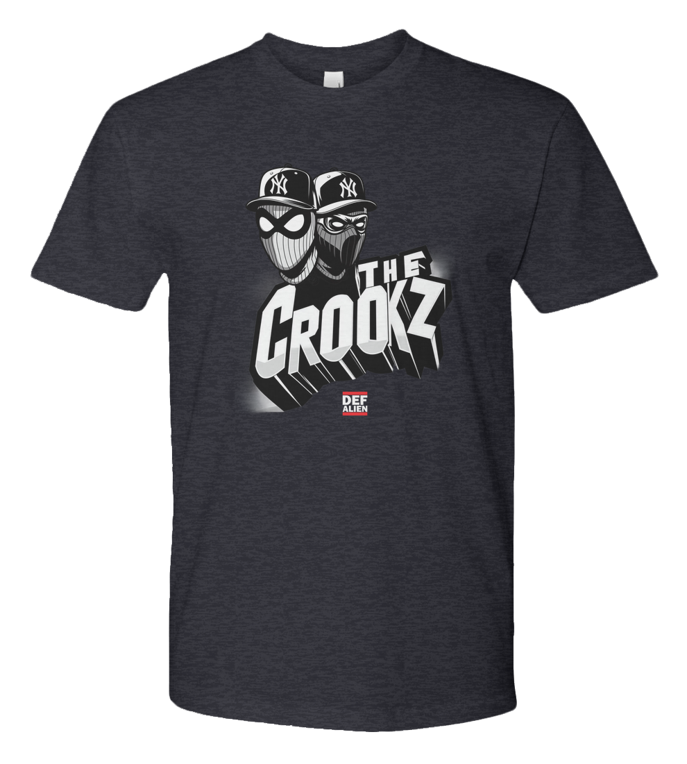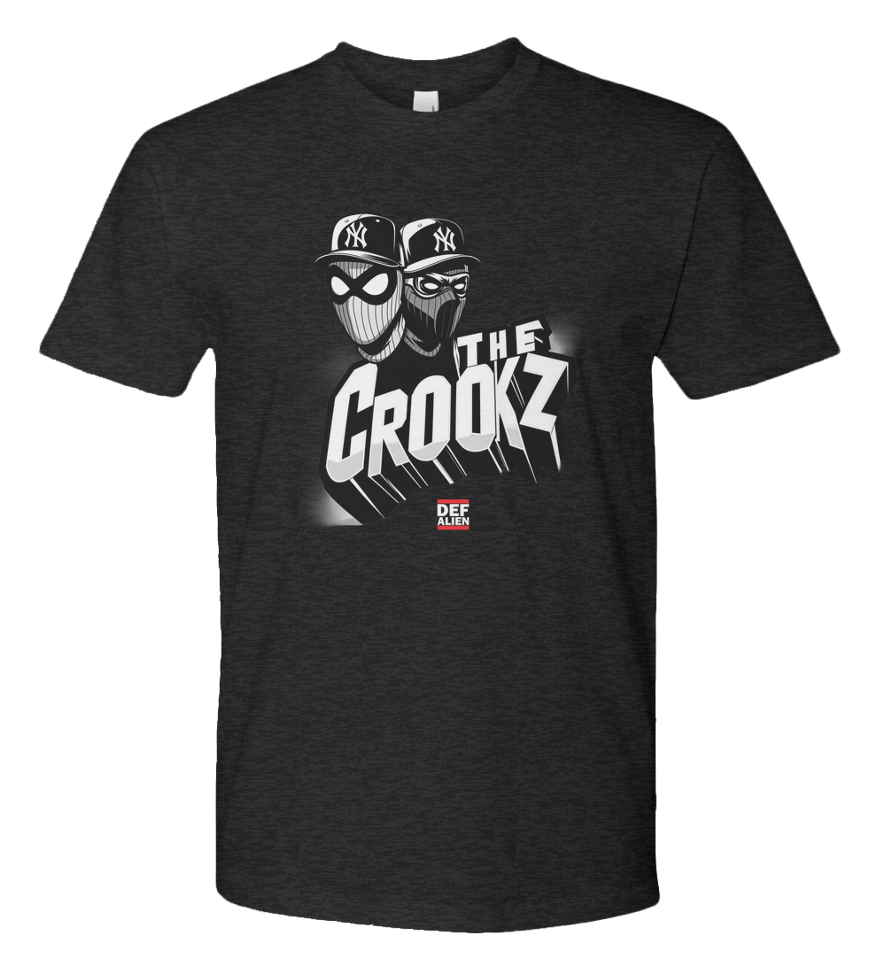 On the front: the iconic The Crookz logotwo animated skimasked figures in matching NY Yankee fitted caps.