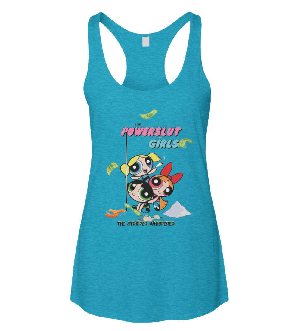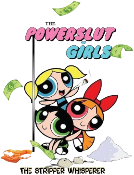 Based on the classic cartoon, the powerpuff girls. (except with cocaine, poles, and dollar bills)