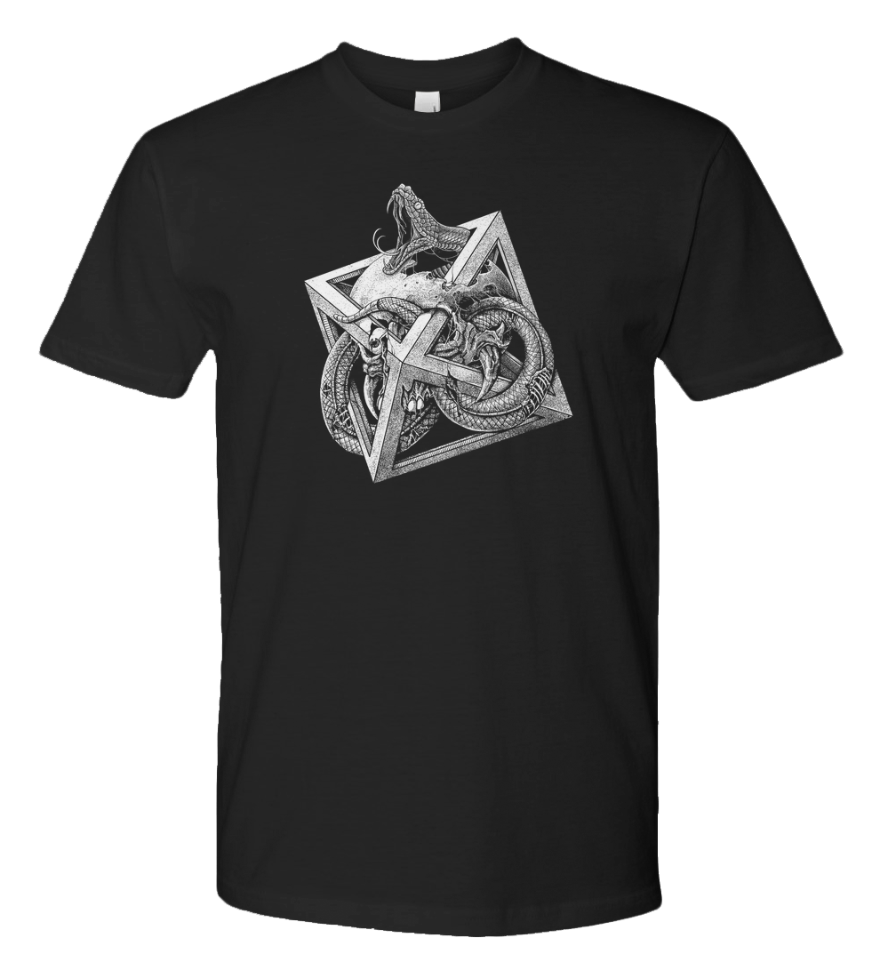 Utilizing masterful stippling, dotwork, and fine-line hatching, this design creates a stark, high-contrast visual that challenges the eye. Themes of infinity, the trap of mortality, and esoteric mathematics come together in this unique piece of dark art. Perfect for those who love Sacred Geometry, surrealism, and technical ink illustrations