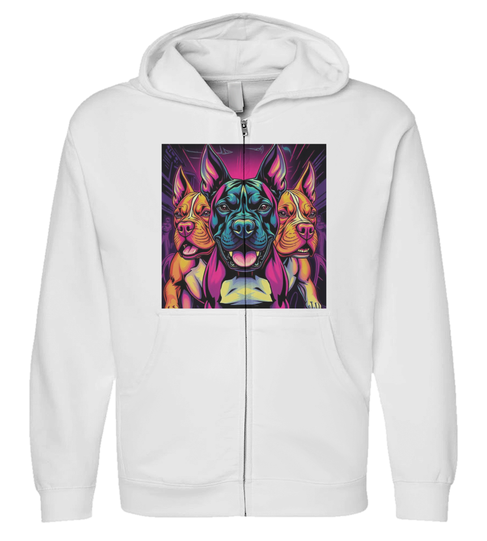 Get ready to unleash your playful side with the Threadz Time Designs Colorful Vibrant Dog Zip Hoodie! This eye-catching white tee showcases a delightful, colorful dog graphic that will add a pop of fun to any outfit. Ideal for dog lovers and those who appreciate unique, artistic designs, this shirt is guaranteed to grab attention and ignite conversations. Don't miss out on the chance to stand out in style with this vibrant and playful zip hoodie!