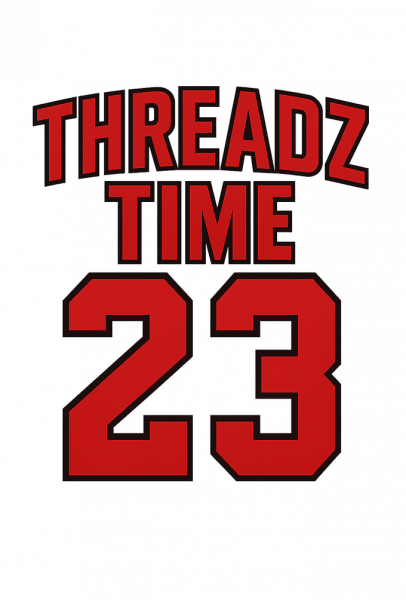 Bold Graphic Design: Features a powerful "THREADZ TIME 23" graphic in vibrant red with a black outline.