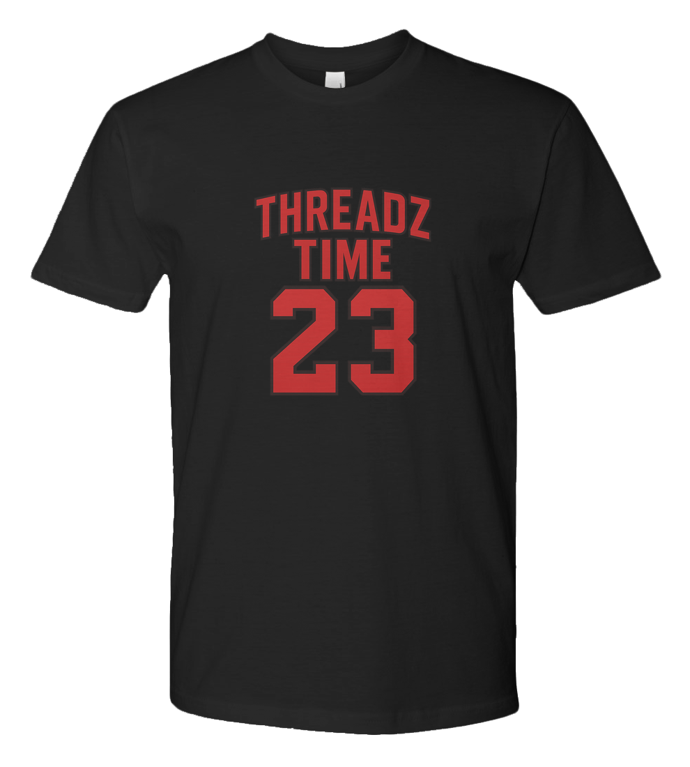 Secondary Keywords: Threadz Time apparel, bold graphic, 23 shirt, classic T-shirt, soft cotton tee, urban style, casual wear, statement T-shirt.