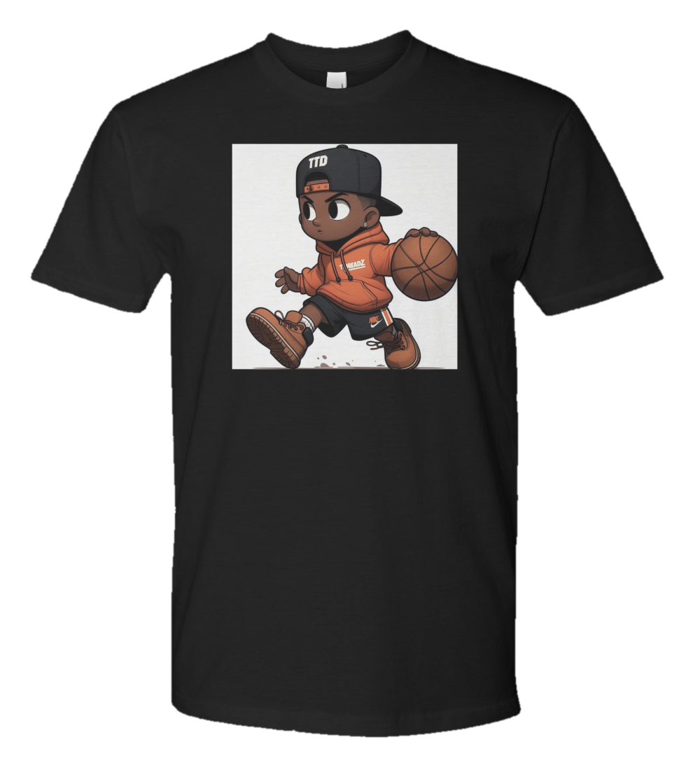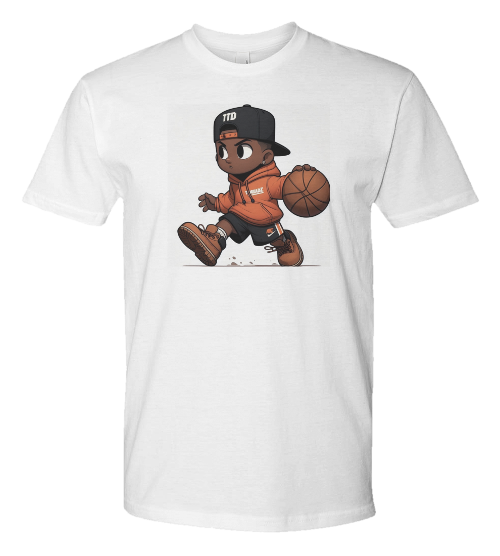 Introducing the must-have white t-shirt from Threadz Time Designs for all basketball enthusiasts and casual streetwear lovers out there! This vibrant tee showcases a playful cartoon basketball player rocking a stylish hoodie, perfectly capturing the essence of fun and athleticism. The bright colors and dynamic pose of the character exude an energetic vibe, making it ideal for both on and off the court. Crafted from high-quality, breathable cotton, this t-shirt guarantees comfort all day long, whether you're shooting hoops with friends or just chilling at home. Get ready to elevate your style game with this dynamic and comfortable tee!