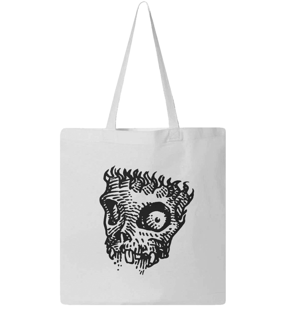 This bold and contemporary tote features two different skulls illustrated by the artist X-W.