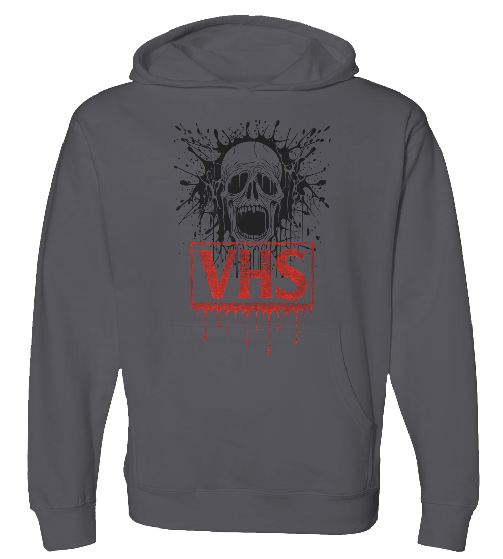 Straight from the haunted shelves of Boneyard Videothis tee bleeds nostalgia. Featuring a gritty red VHS logo that drips like it just crawled out of a cursed tape, this design is a tribute to every rewind that ended in screams. Perfect for horror heads, collectors, and anyone still haunted by the tracking lines of the past.