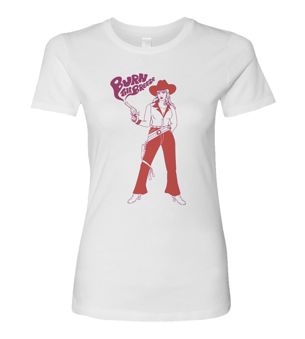Burn The Breeze Tee designed by Jacqueline May. The shirt features a cowgirl from our song 'Burn The Breeze' off our self titled EP.