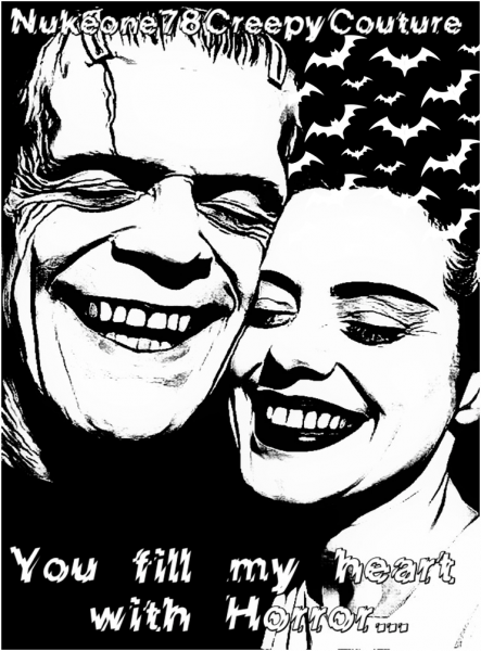 #frankenstein #brideoffrankenstein #monochrome #monstersinlove #youfillmyheartwithhorror #horror #blackandwhite #scary #creepy #spooky #bats #halloweenvibes #film #cinematic #silentfilm #nukeone78creepycouture #tshirtstyle #tshirt #inlove #tshirtdesign #independenthorrorapparel #noveltytees #cooldesign #oldschool #original #blackandwhitefilm #horrorfans #horrorobessed #gothvibes